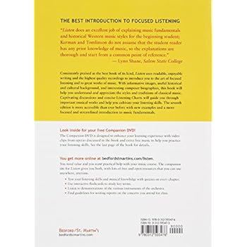 Consistently praised as the best book of its kind, Listen uses readable, enjoyable prose and the highest quality recordings to introduce students to the art of focused listening. Captivating discussions and concise "Listening Charts" guide students through important musical works and cultivate listening skills. With informative images, useful historical and cultural background, and interesting biographical information, the text continues to offer students the best preparation to appreciate the styles and traditions of Western music. The seventh edition of Listen is more accessible than ever before with new, more teachable listening examples and a more focused and streamlined introduction to music fundamentals. An expanded range of formats for the text and recordings—including a new, affordable streaming music option and a new, all-inclusive e-book—gives you more flexible choices and more ways to listen.